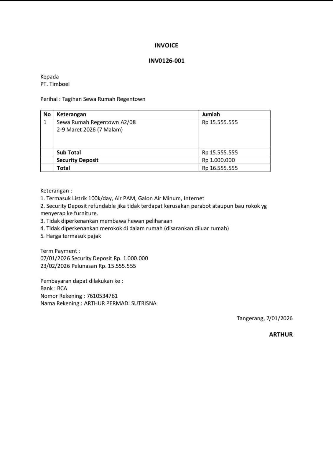 Tim marketing dan kru booth akan menginap di Regen town A2/08 (sudah terbooking tgl 02-09 Maret 2026 )