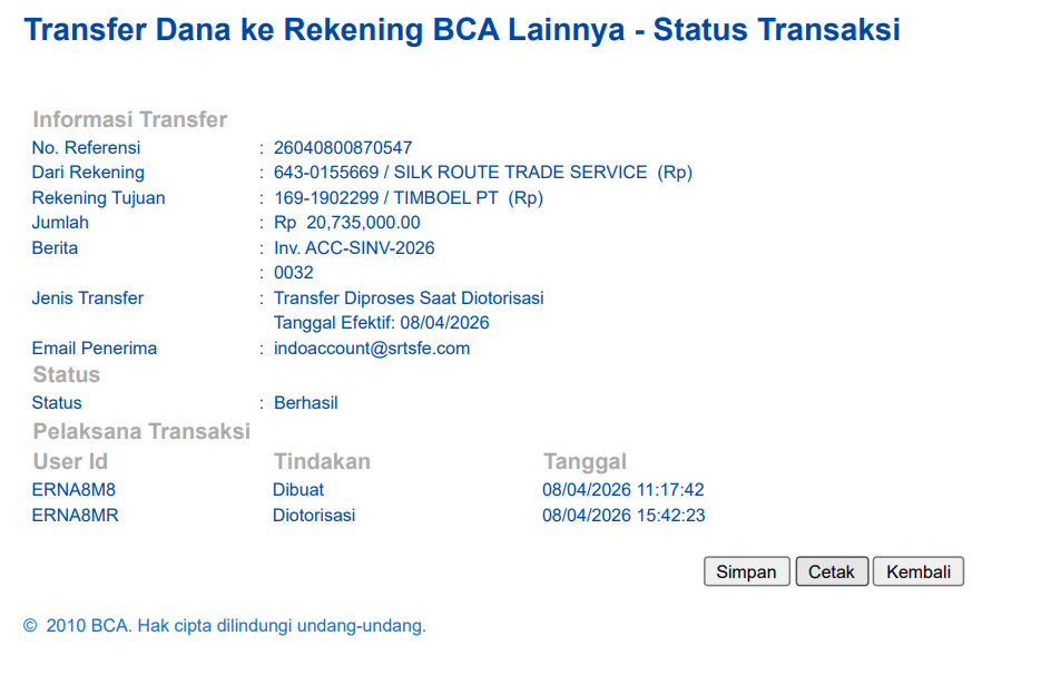 9 April 2026 Approval akhir dan konfirmasi pembayaran